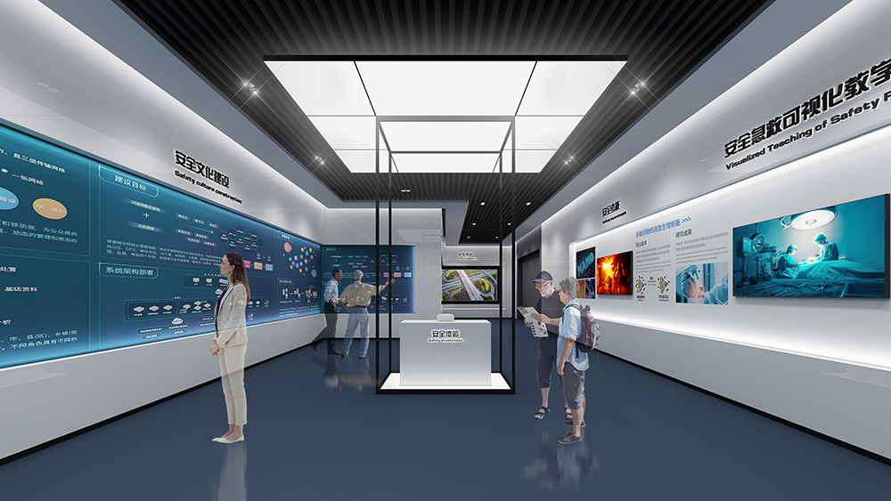 該展廳為深汕西改擴建項目第一個展廳,從最初的材料展示廳,經過深入挖取、精準定位,逐步定位為樹立高速公路改擴建行業名片、探討技術創新模式、促進技術變革創新、及各施工工種施工交底和安全教育體驗等多功能工程展示廳。展廳借助多媒體和數字化技術,結合各種科技展示系統,打造一個綜合展示空間,為參觀者呈現了一個前所未有的體驗盛宴。