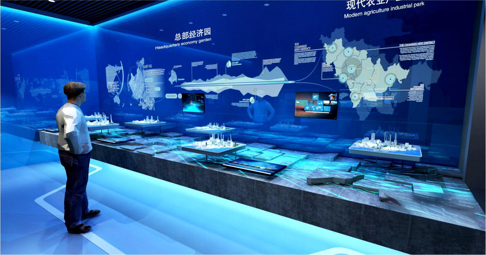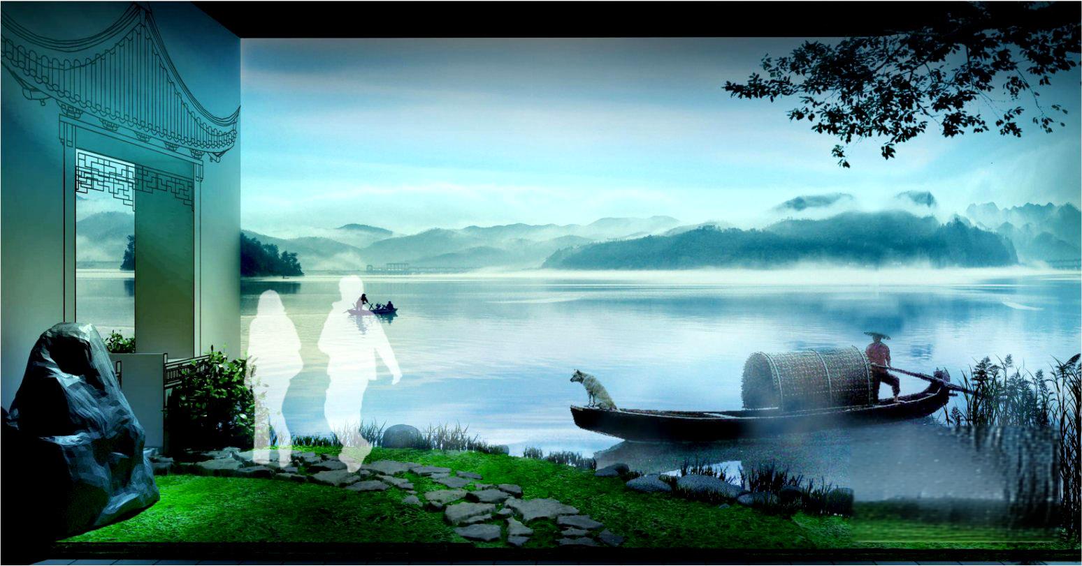 以水為故事主題線索或空間設計元素串聯四大展區序廳、歷史演繹廳、規劃發展廳、生態體念廳。