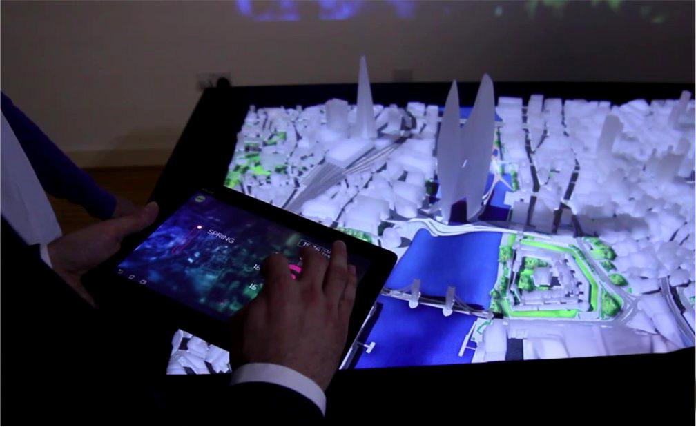 數字沙盤是用投影投射在物理模型上,利用聲光電進行展示的沙盤系統。投影沙盤又稱數字沙盤投影系統,分為實體模型與虛擬影像相結合及全虛擬兩種。所謂數字沙盤就是以計算機技術為核心的現代高科技手段生成逼真的三維圖像模型,借助投影顯示設備或其他顯示設備把計算機上的三維或四維圖形圖像模型顯示到臺面上。具體地說,就是將模擬的三維立體影像精確投影到實體模型的相應位置,與實體沙盤互動展示的演示相映成輝,使沙盤的演示效果更加形象、生動,還可以是桌面投影、地面投影、墻面壁投影顯示等,參觀者以自然的手勢動作與大屏幕投影的三維模型交互作用,多方位多層次瀏覽查詢,從而快速地獲取簡明、精確、優美、逼真的動態信息。