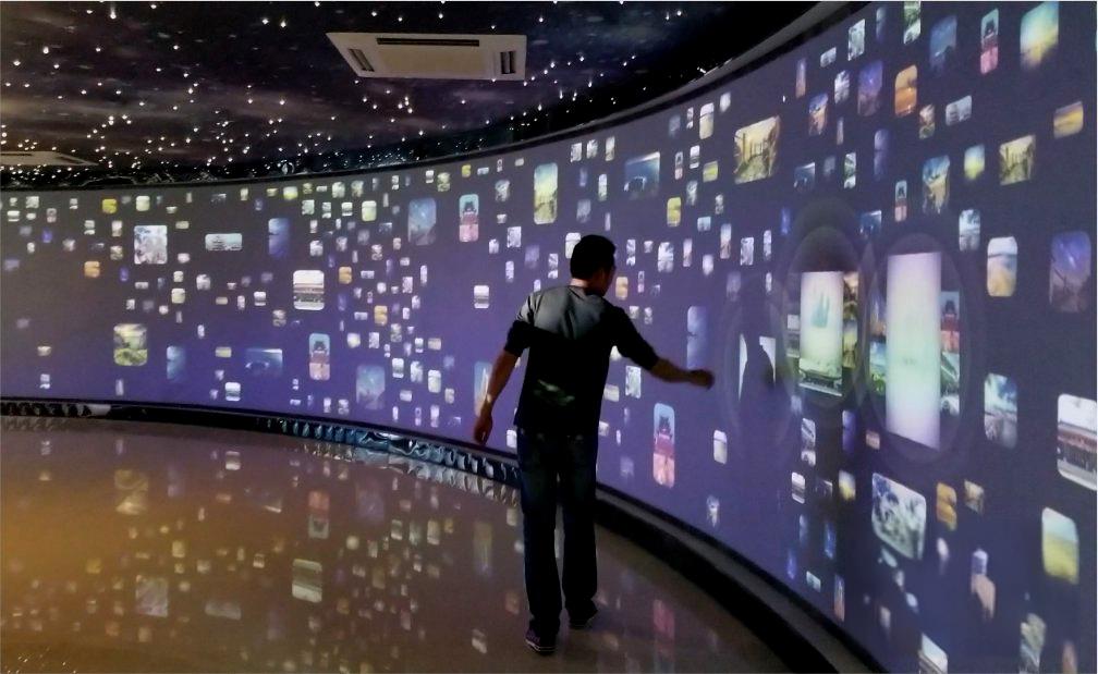 體感交互展示系統(tǒng)運用體感識別與手勢識別技術(shù),真正的實現(xiàn)了利用人體的肢體語言來控制計算機,只需凌空做手勢即可與大幕進(jìn)行交互,無需佩戴任何感應(yīng)設(shè)備,輕松方便的控制想看的內(nèi)容,是新一代的人機交互方式,是人機交互方法的革命性變革。