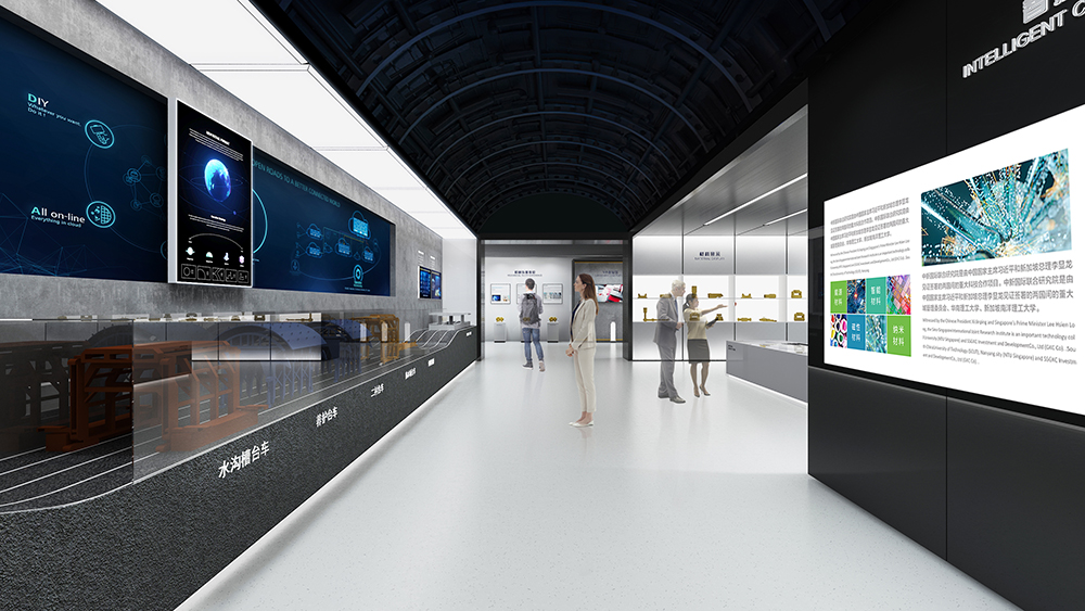 該展廳為深汕西改擴建項目第一個展廳,從最初的材料展示廳,經過深入挖取、精準定位,逐步定位為樹立高速公路改擴建行業名片、探討技術創新模式、促進技術變革創新、及各施工工種施工交底和安全教育體驗等多功能工程展示廳。展廳借助多媒體和數字化技術,結合各種科技展示系統,打造一個綜合展示空間,為參觀者呈現了一個前所未有的體驗盛宴。
